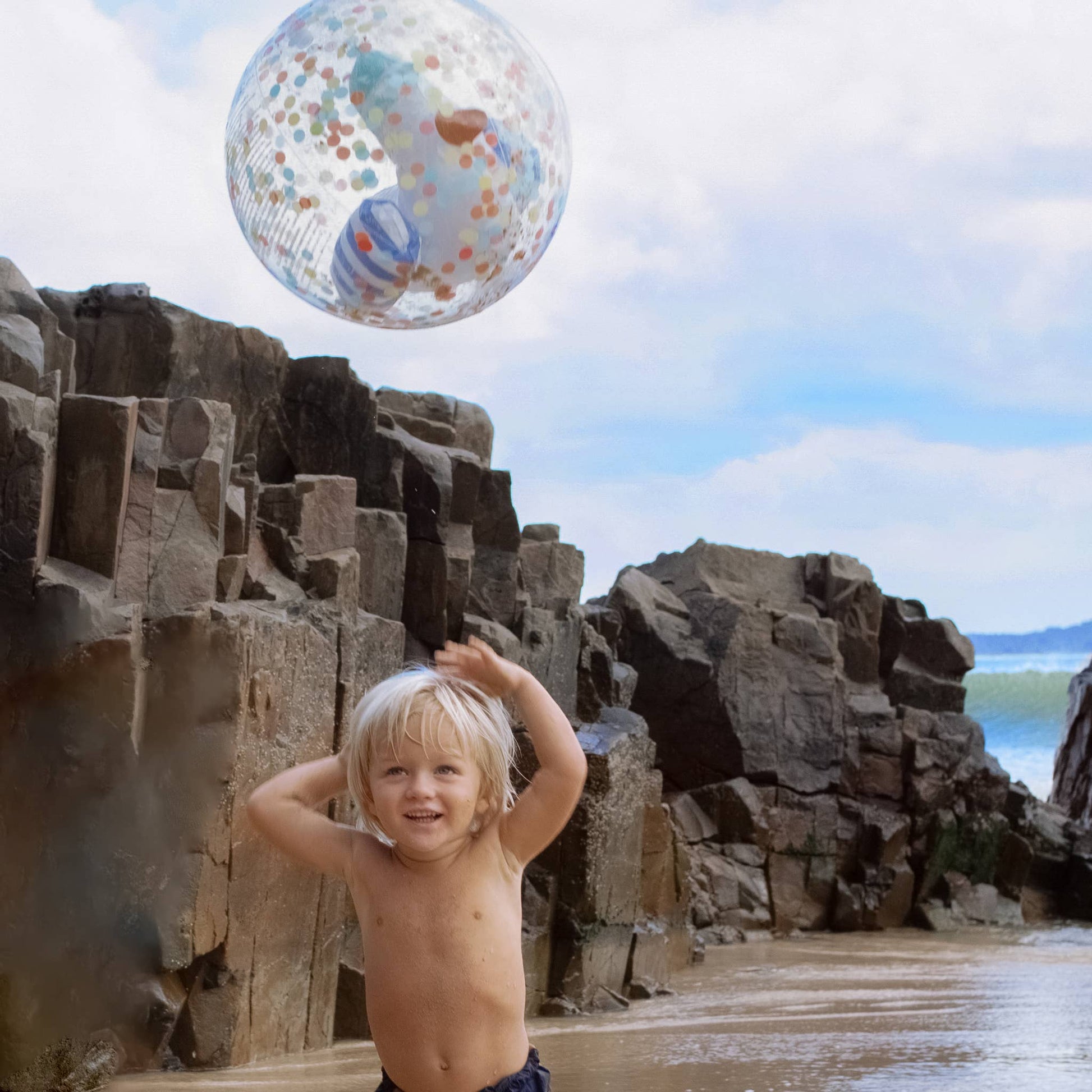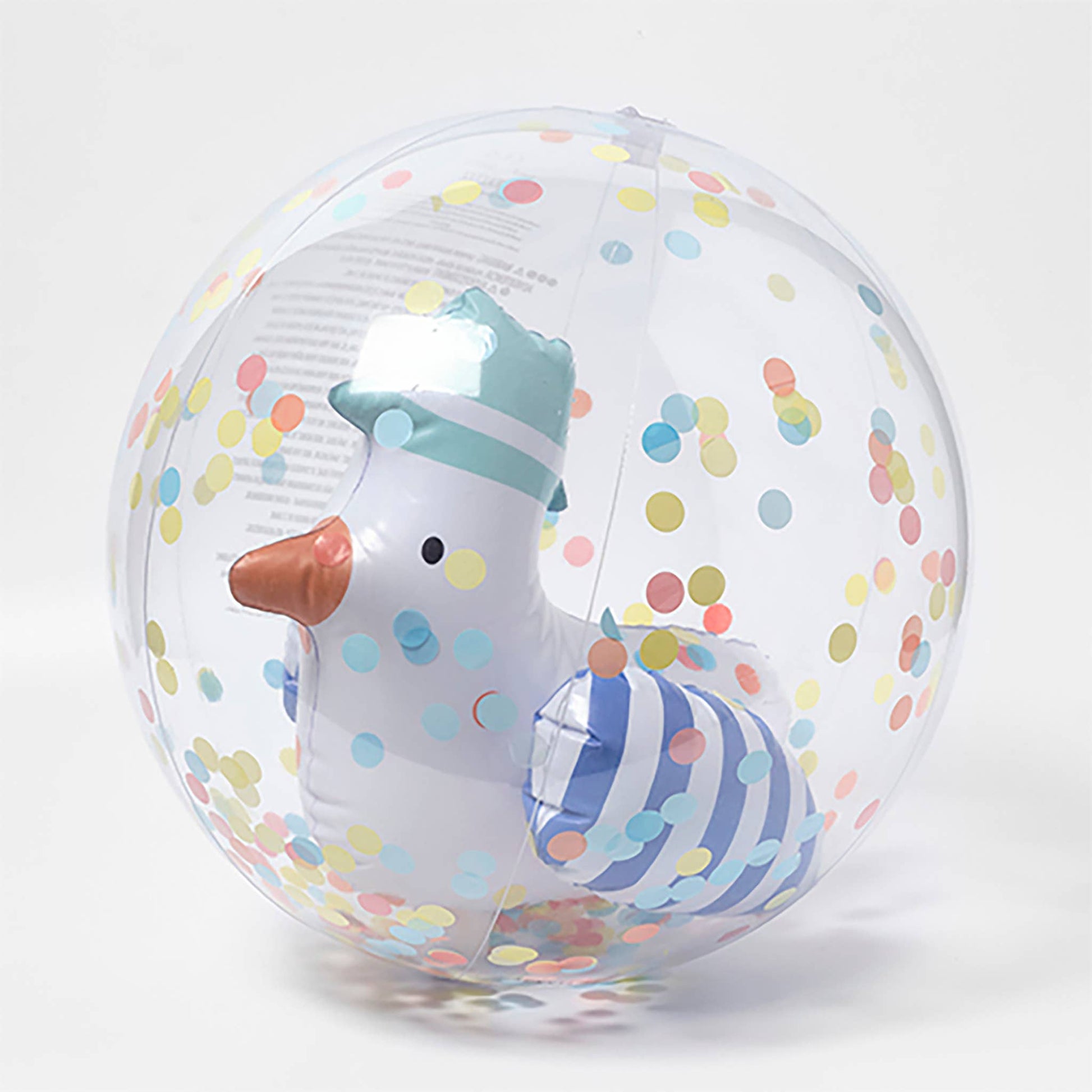 3D Inflatable Beach Ball Sid the Seagull Blue Stripe