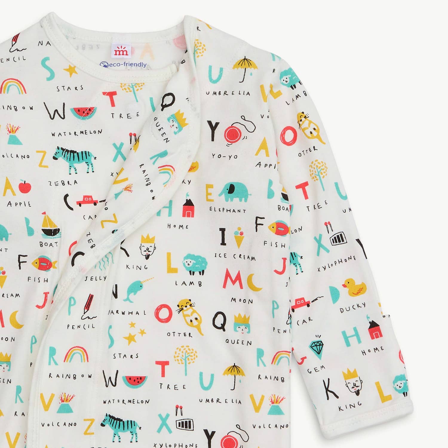 - Magnetic closures: magnets line the seam from the neck to upper thigh for sizes up to 0-3m & from neck to crotch for sizes 3-6m and up.