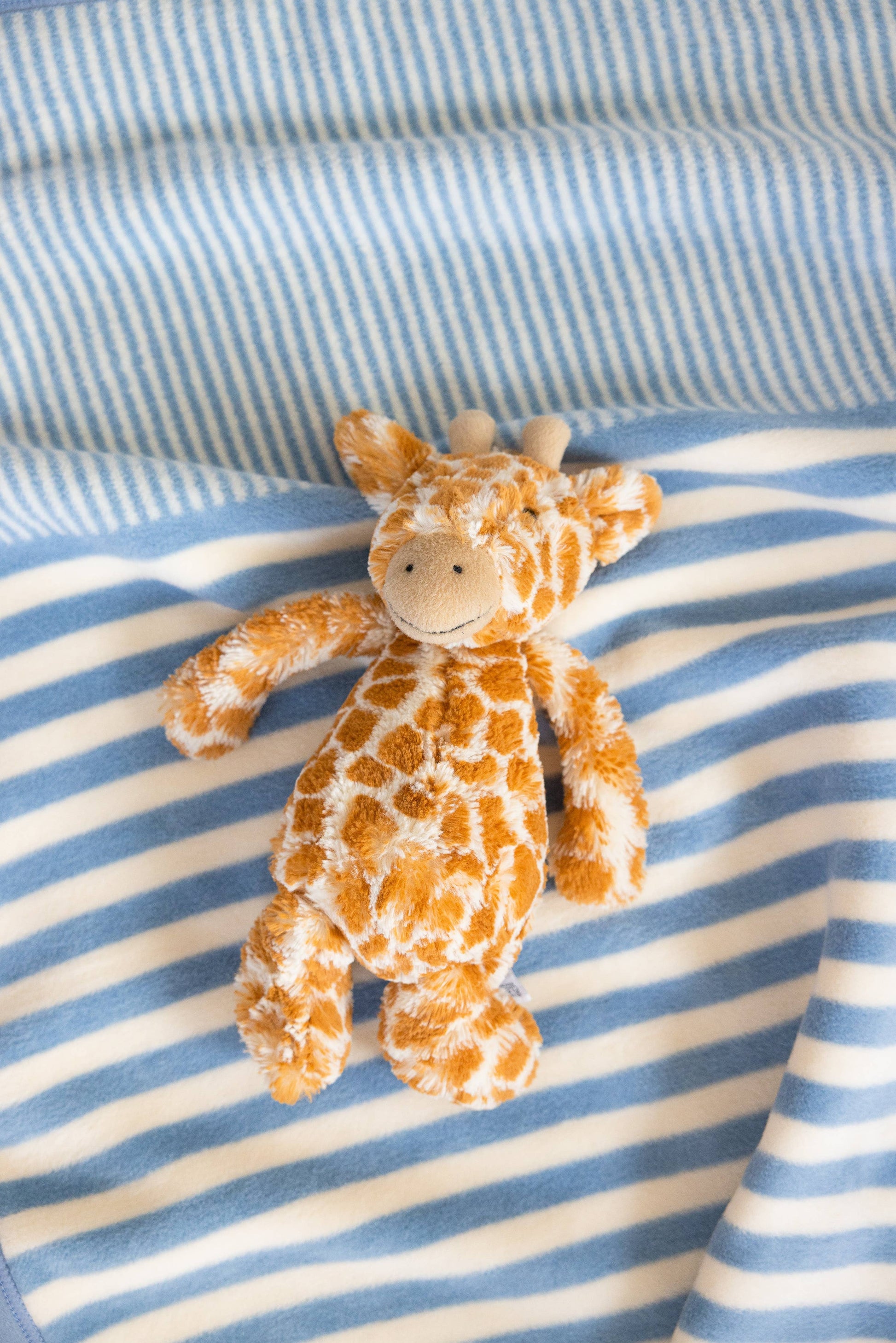 All eyes are on these baby blues. We put the softest shade of blue in an array of complementary-sized stripes—and boy oh boy (or girl), is this a sweet mini for a lucky little.