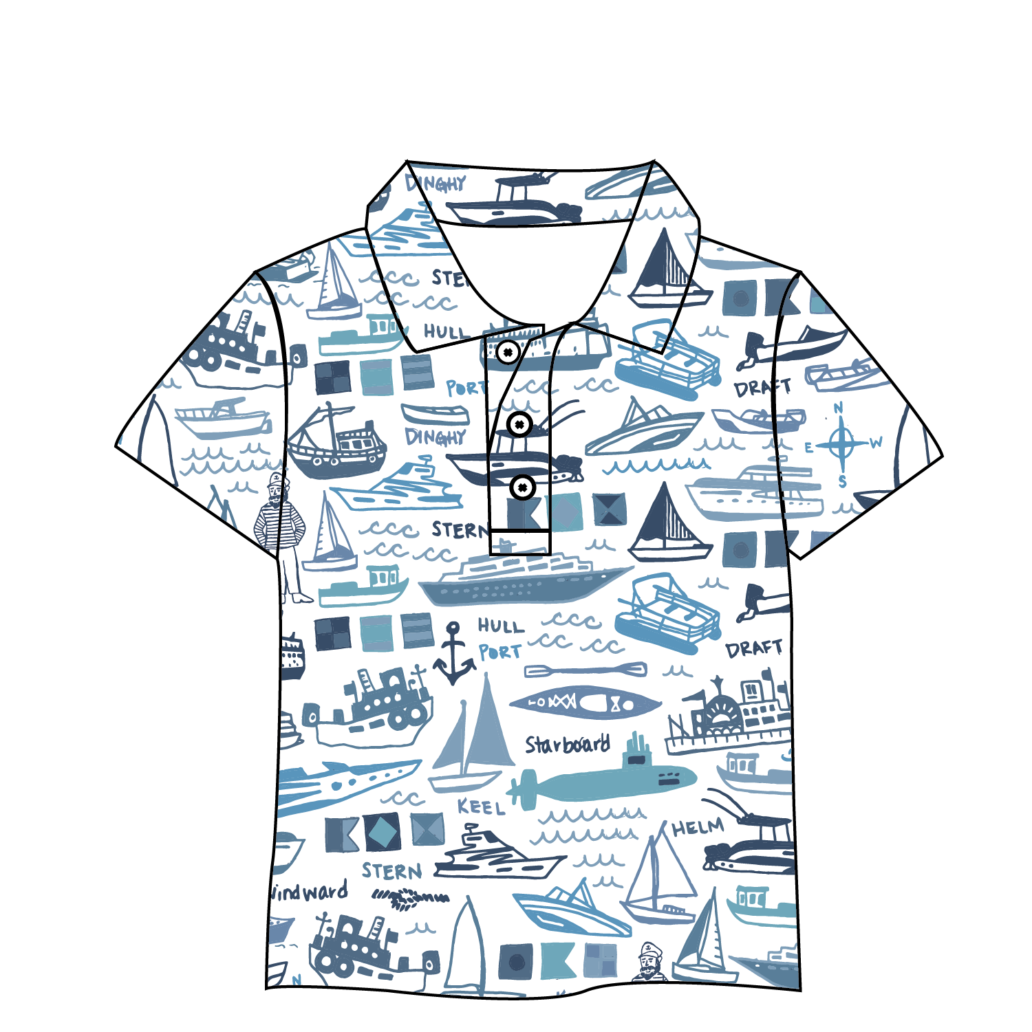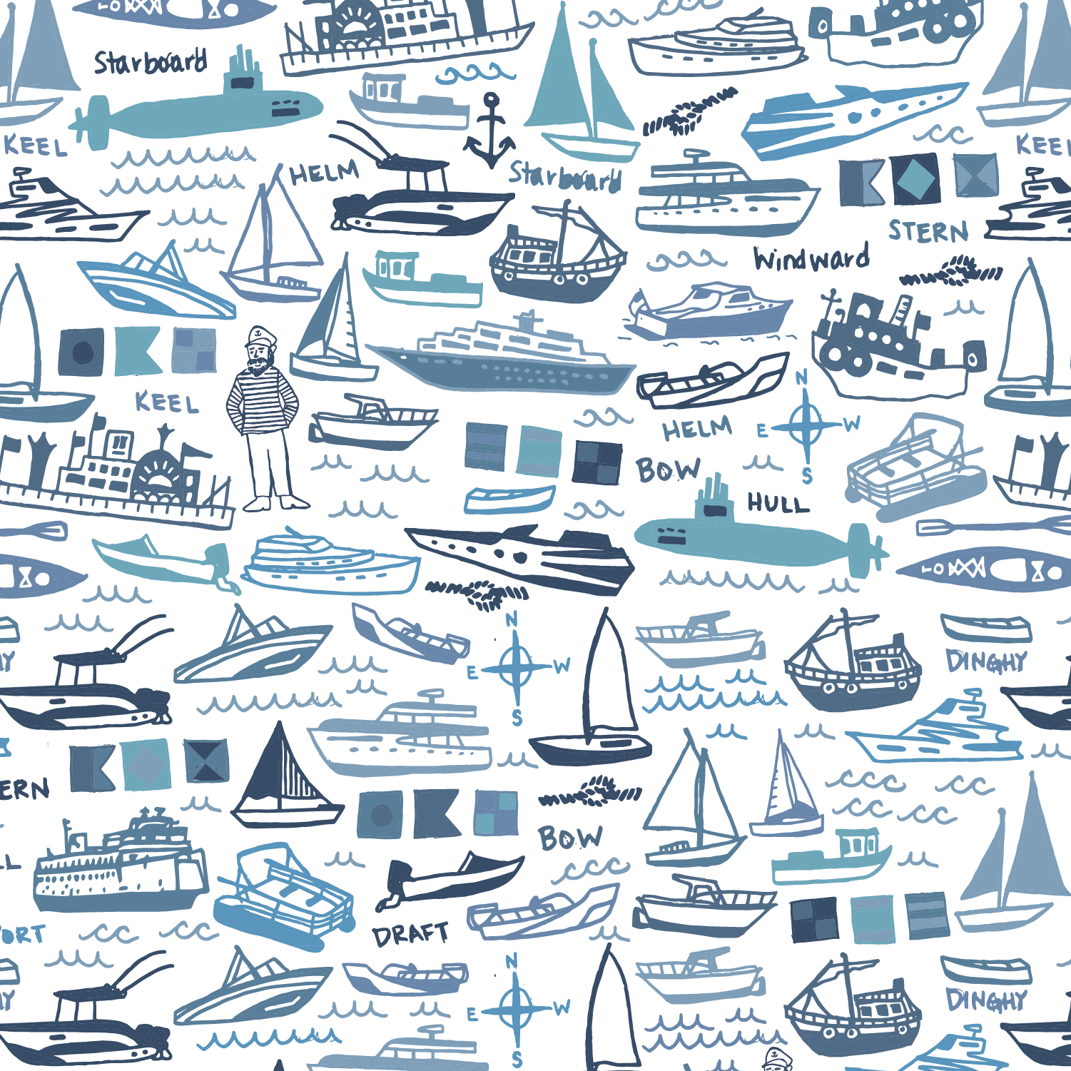 Like Jimmy Buffet says water is the best medicine! Count the boats in this hand-drawn nautical boat patterns - from speed boats, to ferry boats, fishing boats and sail boats you will feel the wind in your sails as you sport this nautical inspired print!