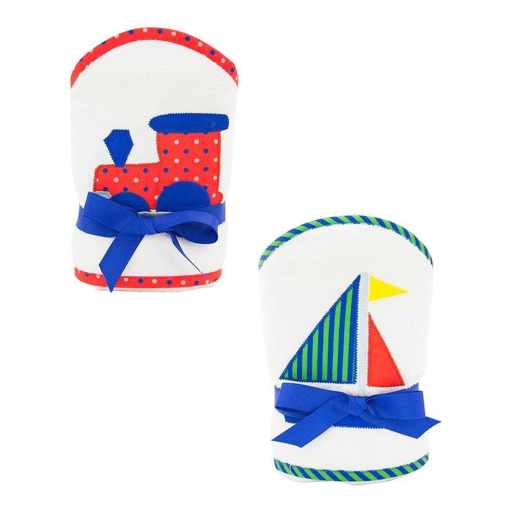 Let's make bath time a fun time! Our cute Hooded Towel features colorful trim that is matching with the style of the icon placed on the hood. It comes rolled up and tied in a bow, perfect for gifting! Add a coordinating bib and burp cloth to create a whole set of fun gifts for both mom and baby! * Terry cloth, Cotton * 31" x 31"
