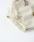 Coordinating bloomers are included with sizes 3-6 months through 18-24 months.