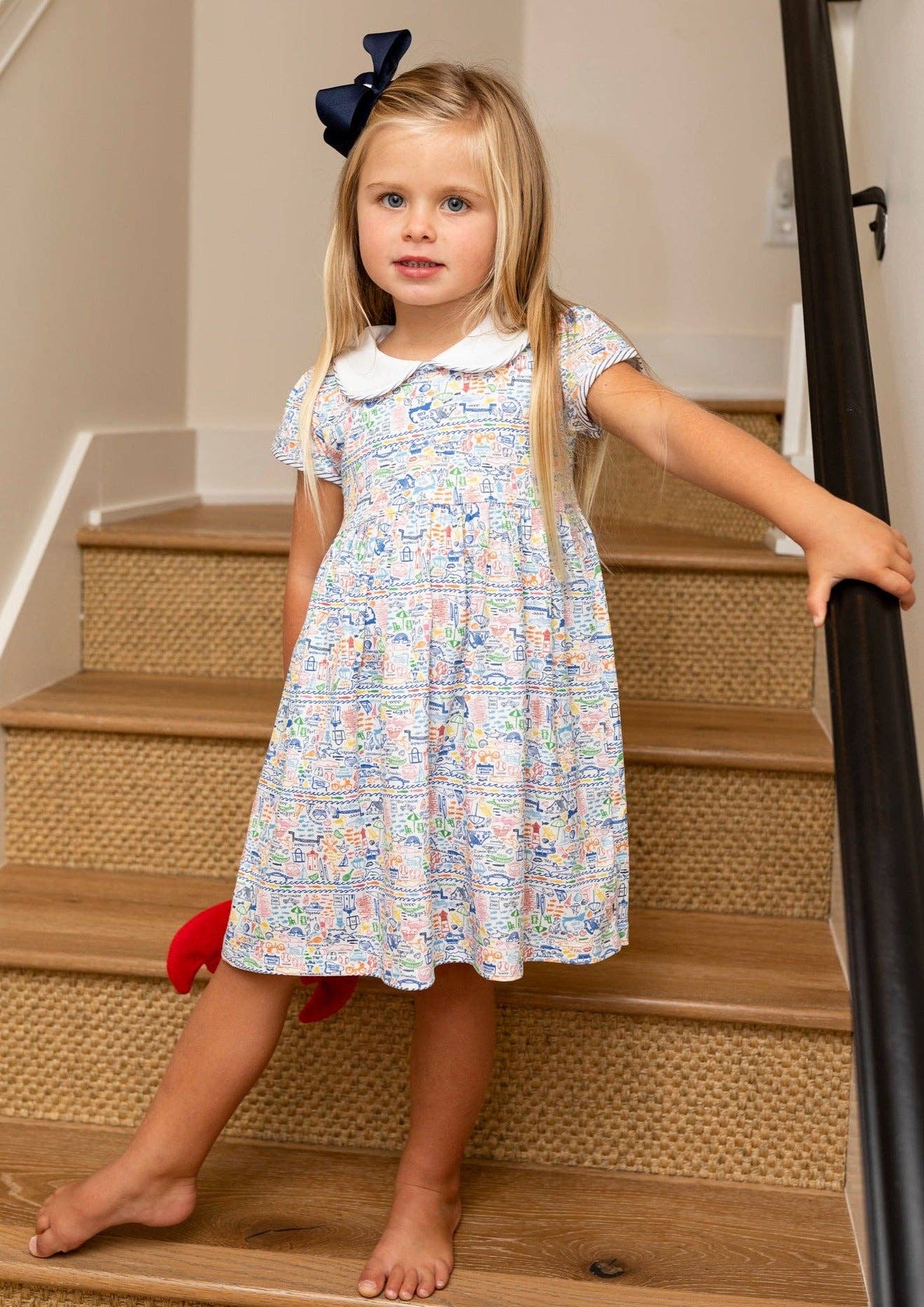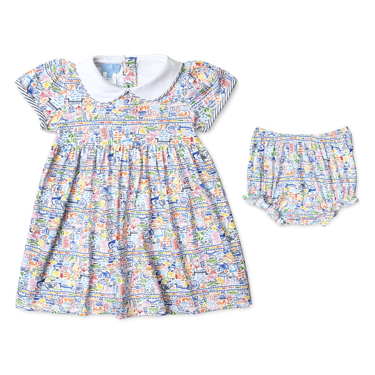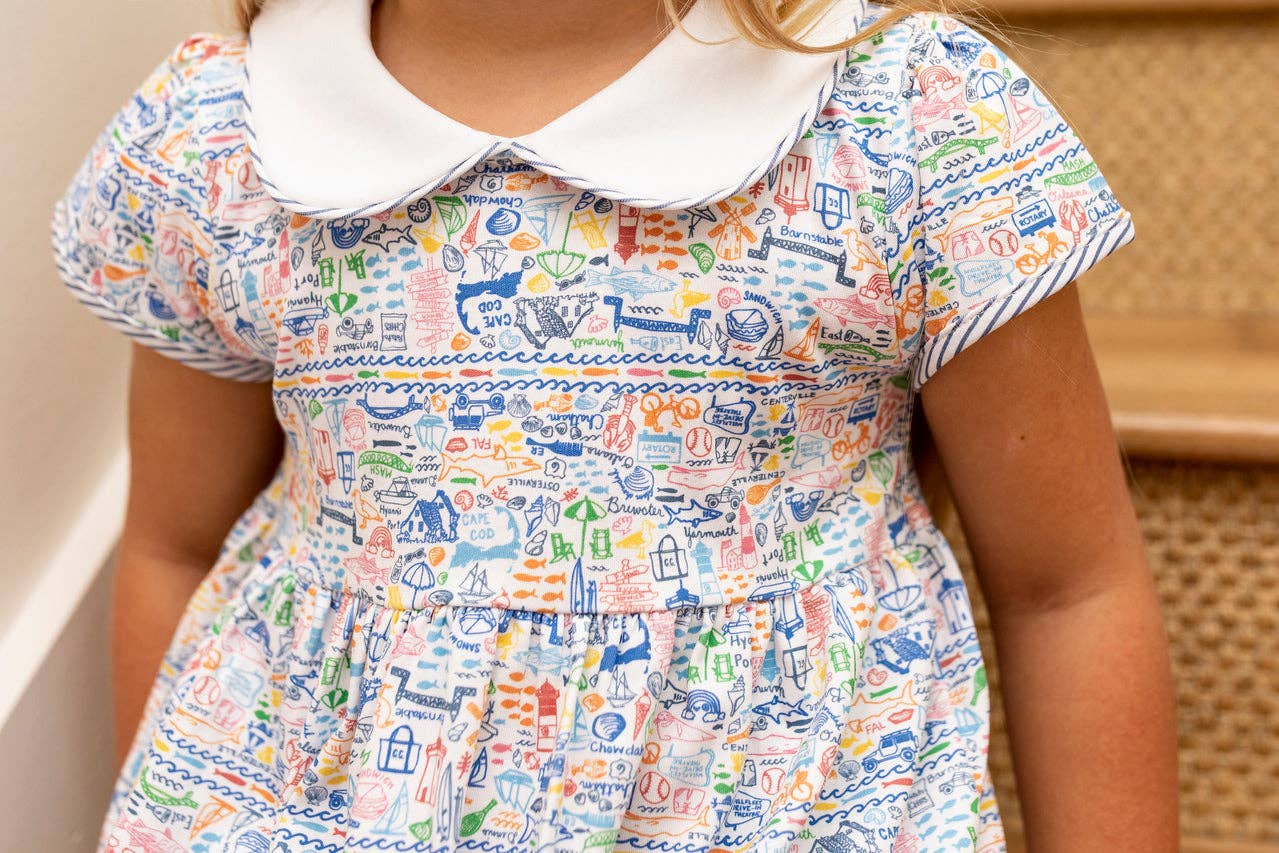Your little lady will love twirling around in our Cape Cod print Sally Dress featuring all things Cape Cod from ice cream cones to sailing and the beach!