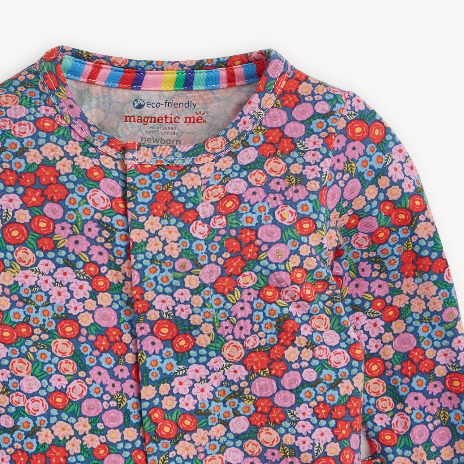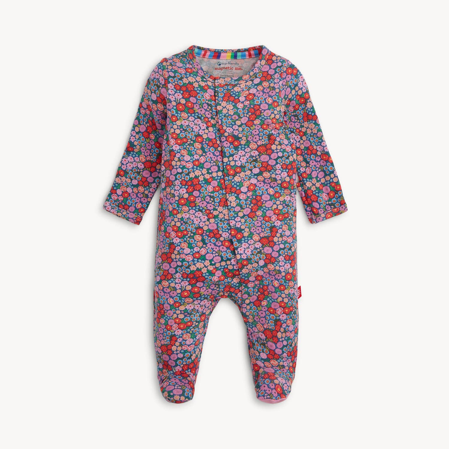 As Magnetic Me, we present the Gilded Lily Modal Footie. This parent-favorite item is more than just a baby jumpsuit. It's an embodiment of our commitment to making life easier for parents and babies alike. Born out of a desire for gentleness and convenience, it's crafted from our eco-friendly TENCEL™ modal fabric. Sourced from sustainable beechwood trees, this material is not only softer, cooler, and more durable than bamboo, but it also resists pilling, fading, and stretching, ensuring ultimate comfort wash after wash. Let your little one enjoy the gentle embrace of the Gilded Lily Modal Footie.