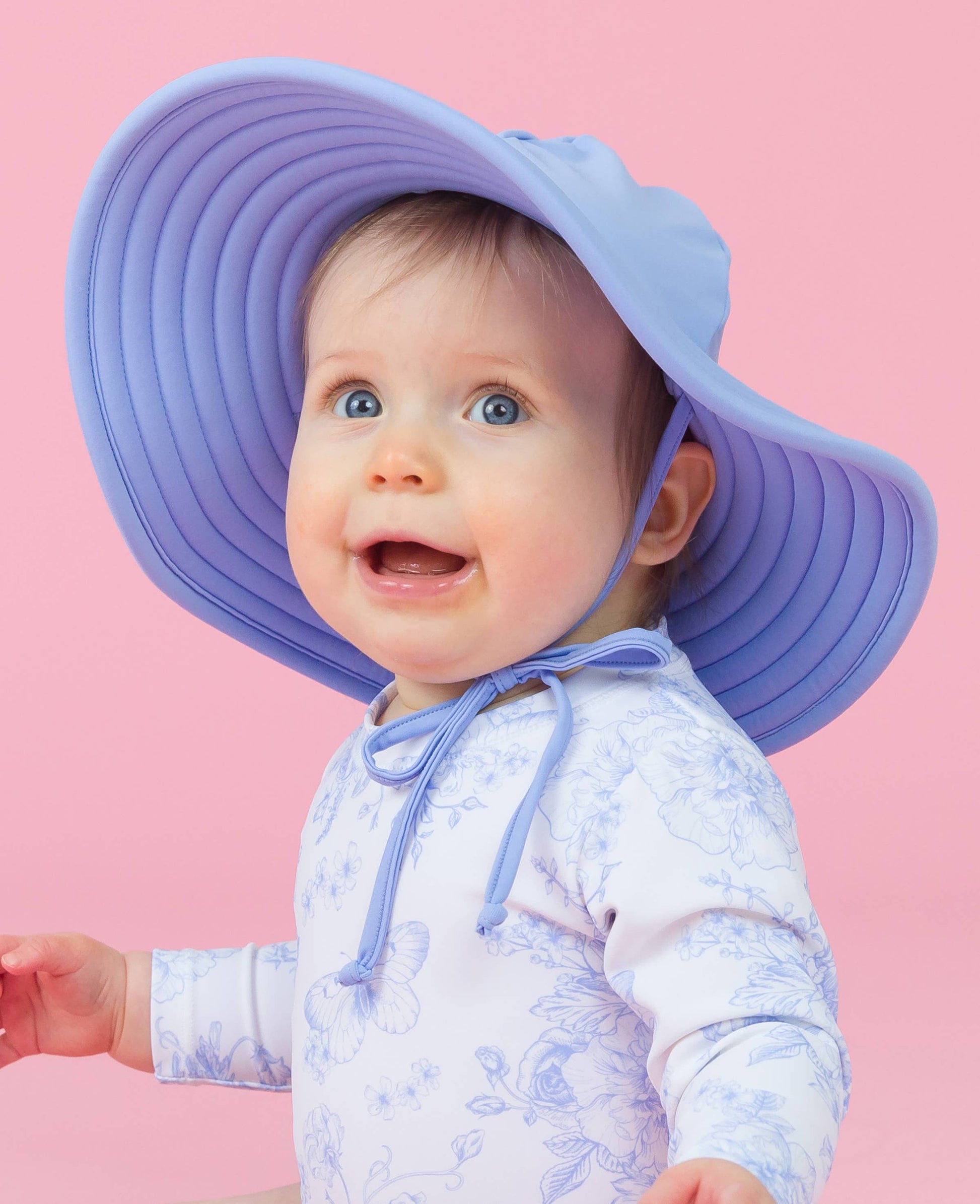This sweet swim hat has built in UPF 50+ sun protection to keep little ones extra safe from the sun's harmful rays. All sizes feature functional ties and can be styled two ways: tied under the chin to ensure a snug fit or tucked up through the brim and tied in the back in a fun bow!