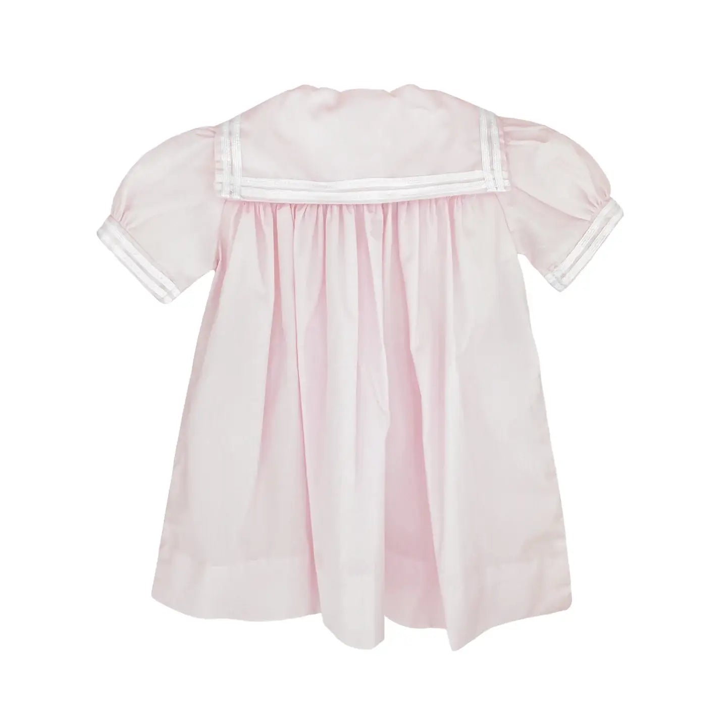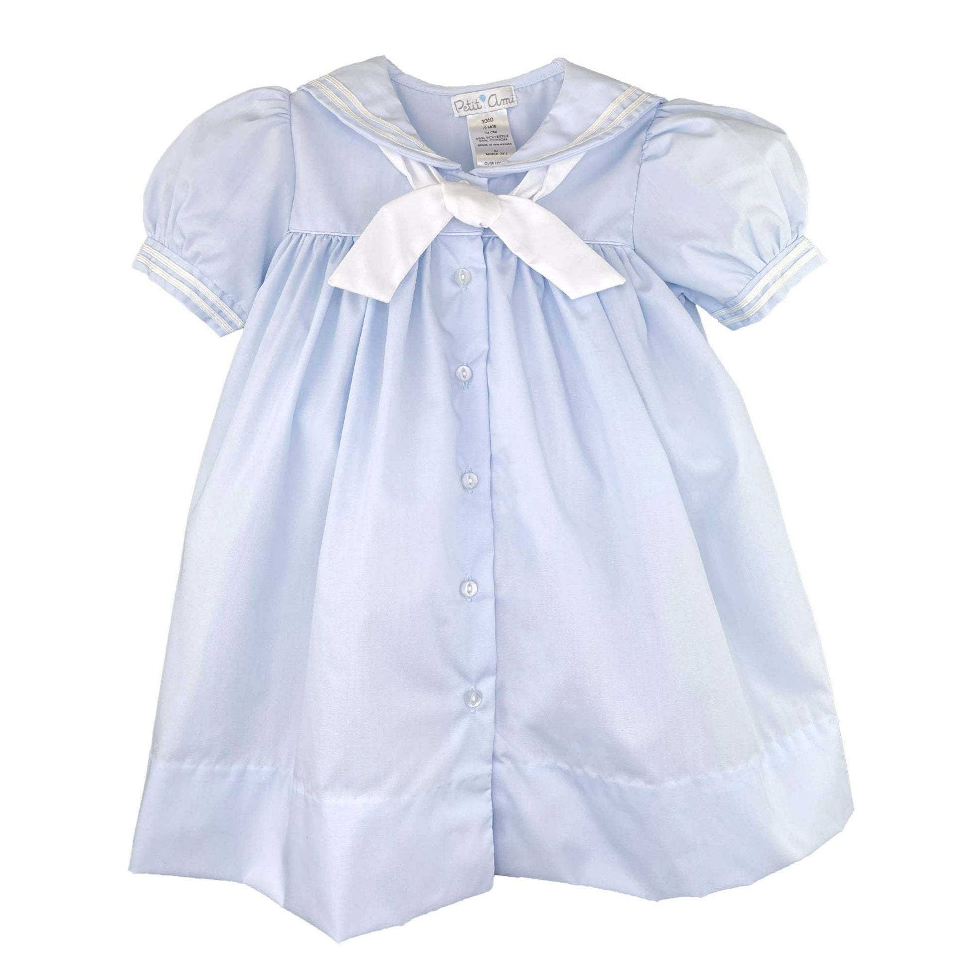 Our classic and traditional sailor style nautical dress for baby girls makes a beautiful outfit for family photos and special occasions.