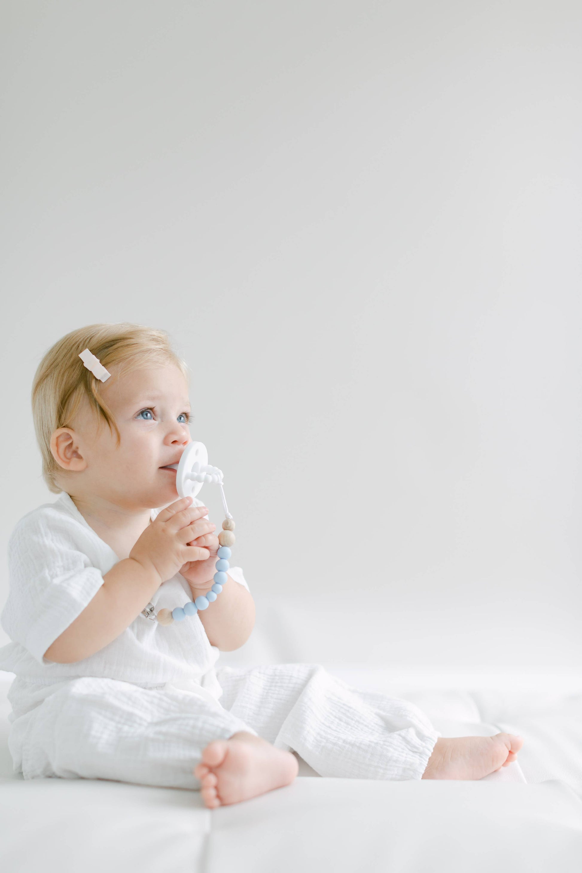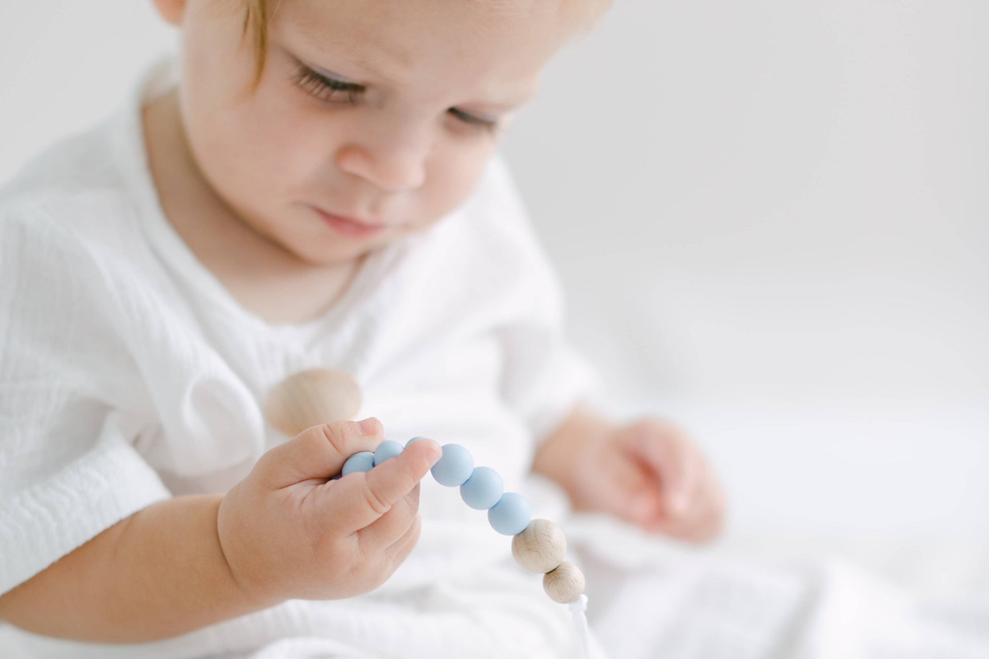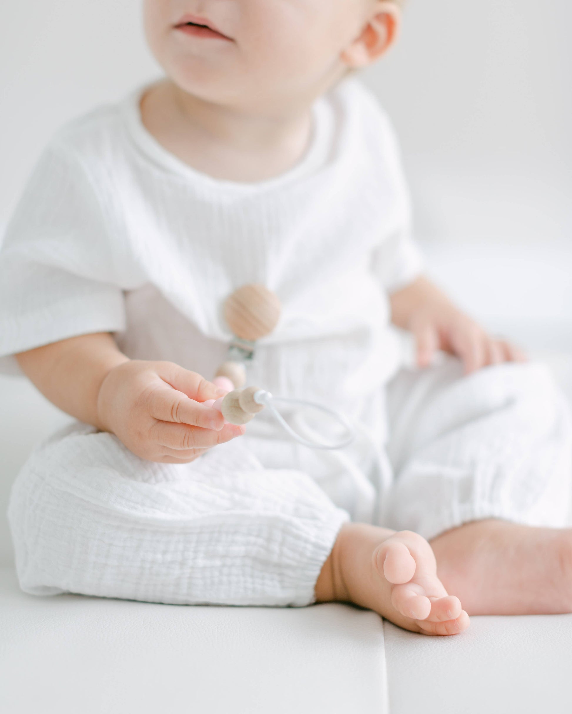 To avoid a choking hazard, please inspect your baby pacifier clip before each use and discard at the first signs of wear and tear or damage. The baby pacifier clips are to be used under adult supervision at all times. Materials natural wood, food grade silicone, nylon cord, lead free metal Non-toxic | FDA approved | CPSIA compliant