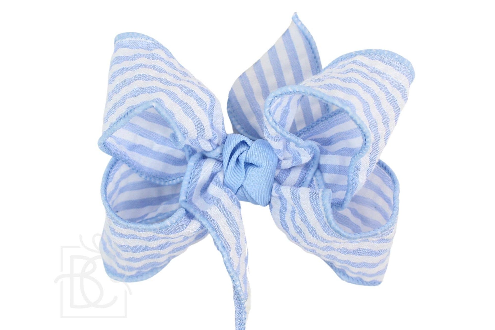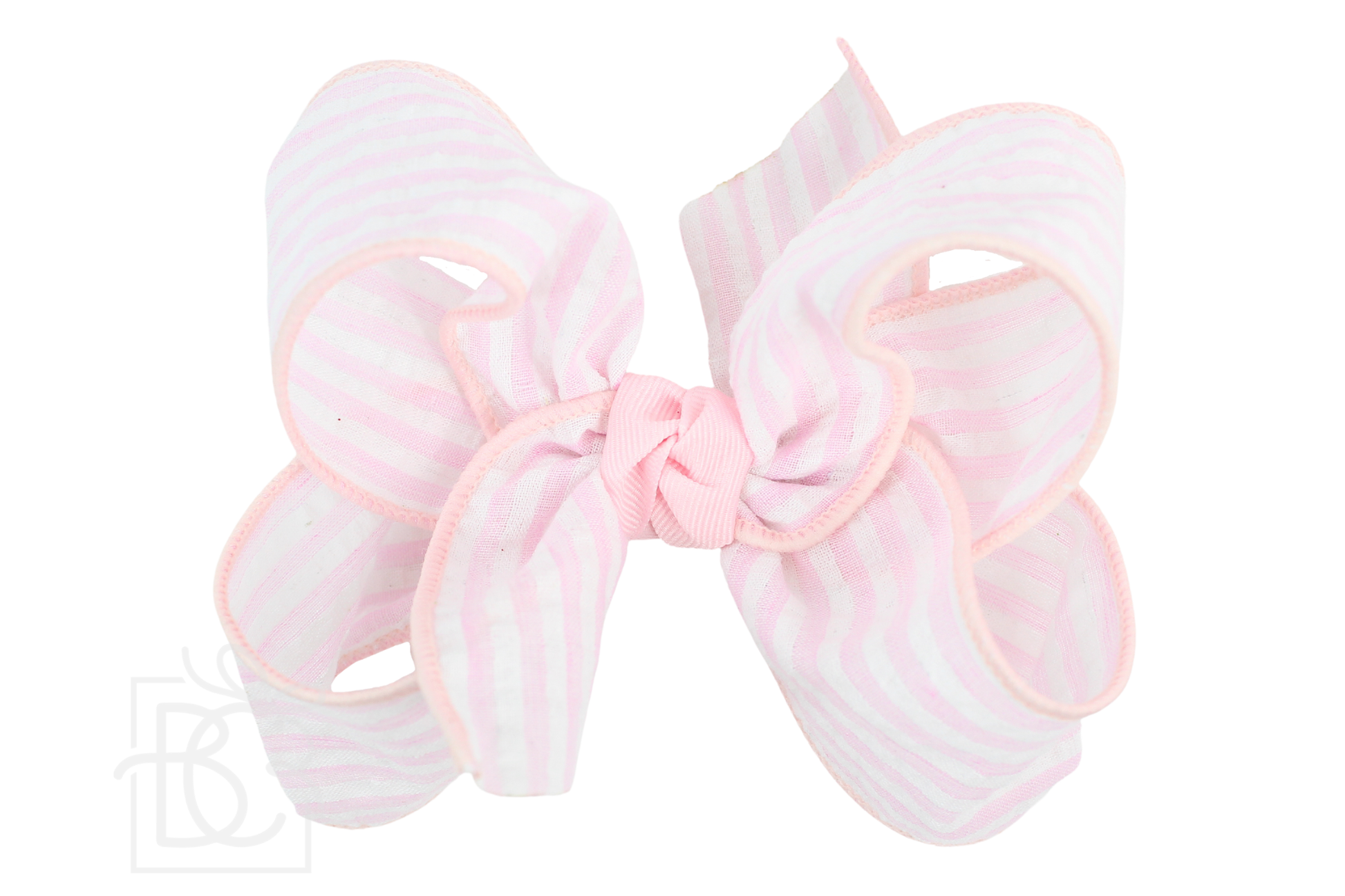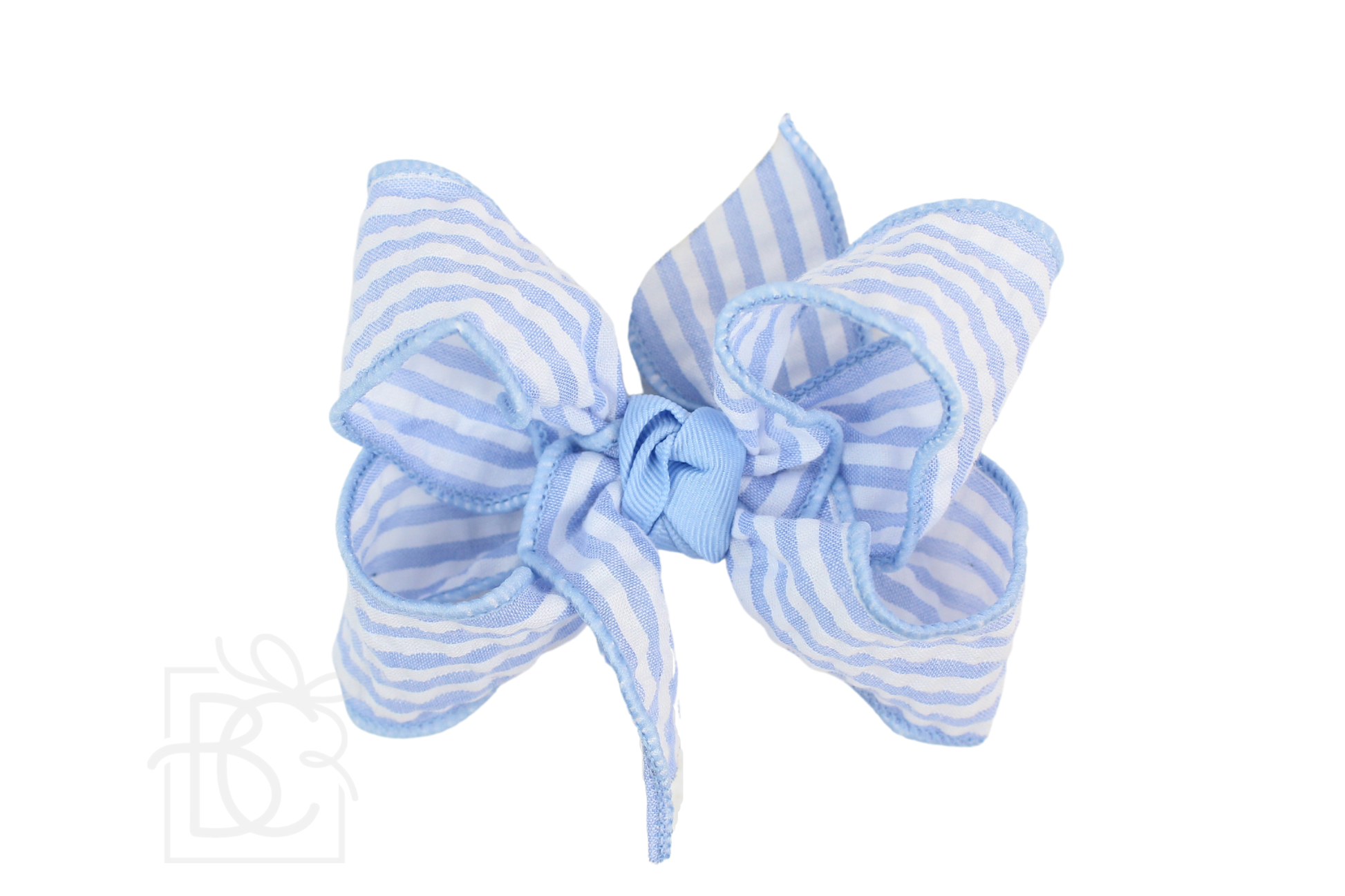 2.25" NEW SEERSUCKER RIBBON, 6.5" XXL BOW W/ KNOT ON LG. ALLIGATOR CLIP
