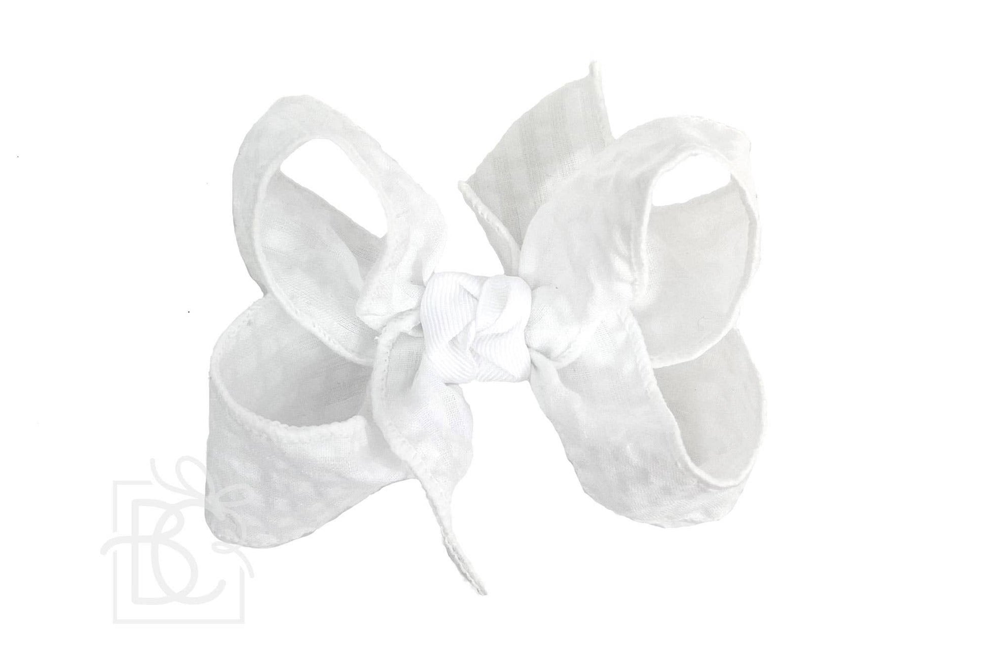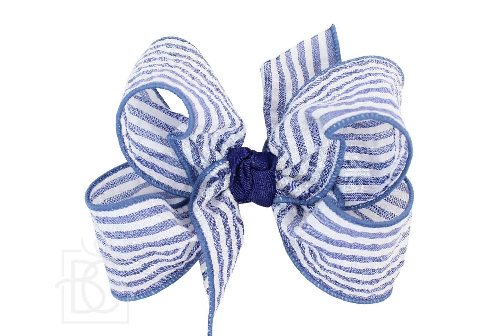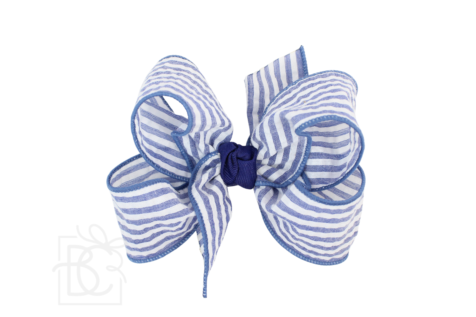 2.25" NEW SEERSUCKER RIBBON, 6.5" XXL BOW W/ KNOT ON LG. ALLIGATOR CLIP
