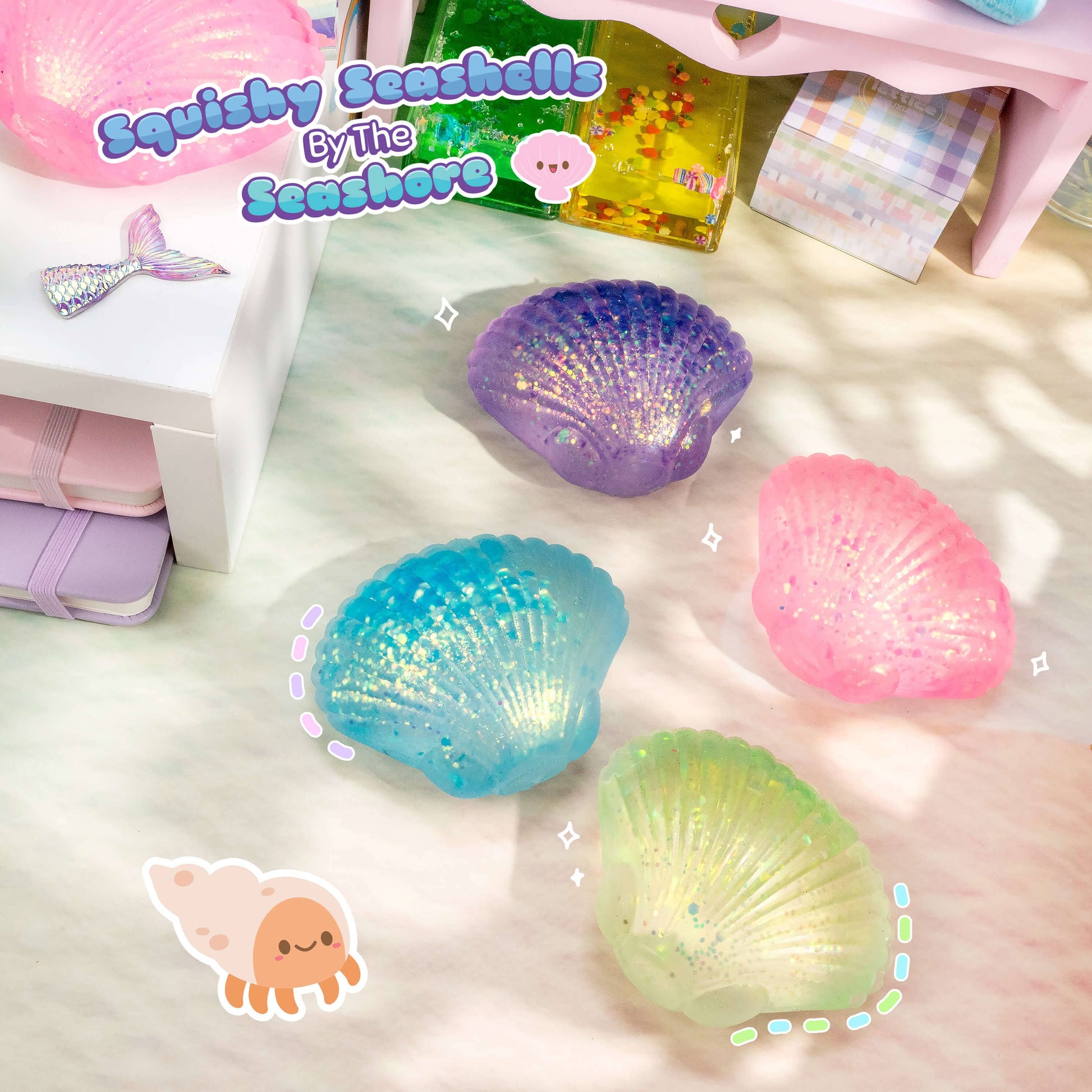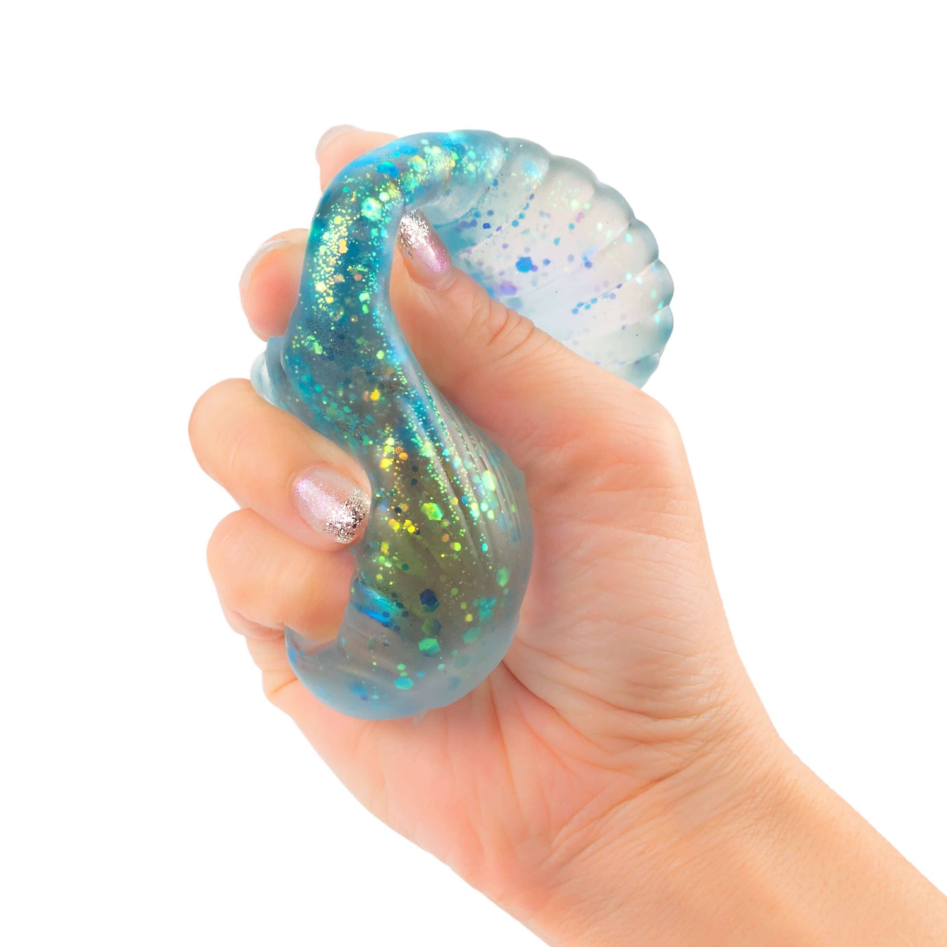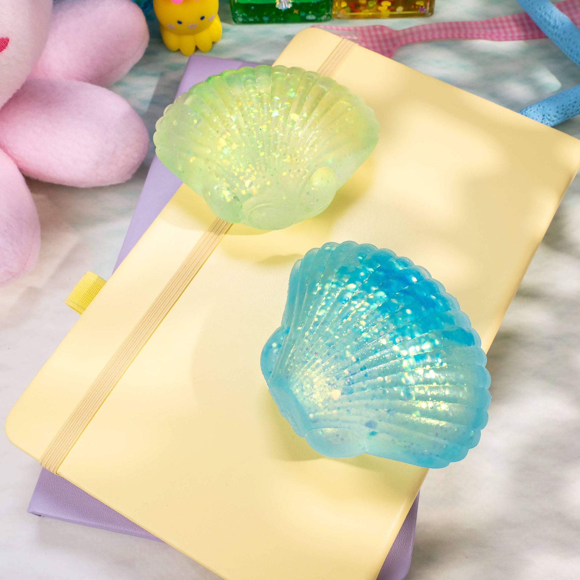 Take a swim in these ultra-glittery Squishy Seashells By The Seashore toy! Dive right in and squeeze the gummy goodness of this seashell-inspired toy - they're so squishy you'll barely be able to keep your hands off 'em! Offering the perfect mix of sparkle and squish, these shells will keep you coming back for more!