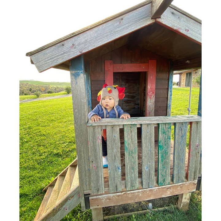 Such a fun way to celebrate fall, our turkey hat is knit in cozy Icelandic yarn with colorful 'feathers' and even a wattle! The earflaps can have colorful tasseled ties to keep the hat securely in place. Get one for everyone in the family for thanksgiving, it's a perfect photo prop! 100% acrylic.